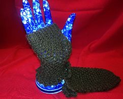 Hand made fingerless gloves, two or three designs are available, such as the above, also a lace look. One size fit most, some sizes are medium to large, some small to medium.
